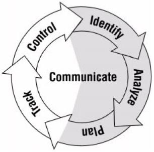 O acompanhamento permite monitorizar os indicadores dos riscos e as acções de mitigação. O controlo corrige os desvios relativamente aos planos de mitigação dos riscos. A comunicação permite a partilha de toda a informação ao longo do projecto e é a pedra mestra para uma gestão eficaz dos riscos.
