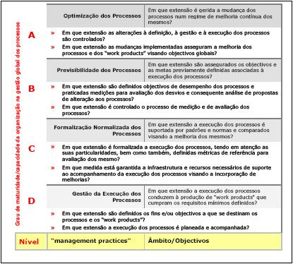 As abordagens por processos (sejam elas de análise, de desenho, ou de construção) devem ser concretizadas segundo modelos estruturados que permitam níveis elevados de controlo do risco, que sejam geríveis e que constituam verdadeiros drivers de aprendizagem contínua. Dentro de uma mesma organização, poderemos encontrar (a experiência diz que sempre) diversos níveis de maturidade de processos, normalmente associados a tecnologias diversas, com exigências de competências tecnológicas também diversas e com respostas específicas por parte dos recursos humanos (também diversas).