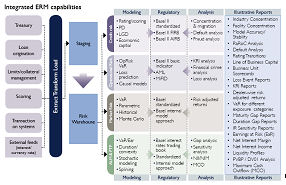 É possível chegar à solução final a partir de muitos pontos de partida diferentes, utilizando uma combinação de soluções internas e de terceiros. As decisões relacionadas com a tecnologia precisam de ter em conta as arquitecturas de TI existentes, a complexidade do projecto, a disponibilidade de especialistas na área em questão, e a estratégia a longo prazo. A figura que se segue representa um ambiente tecnológico de ERM (enterprise risk management) integrado para um banco.